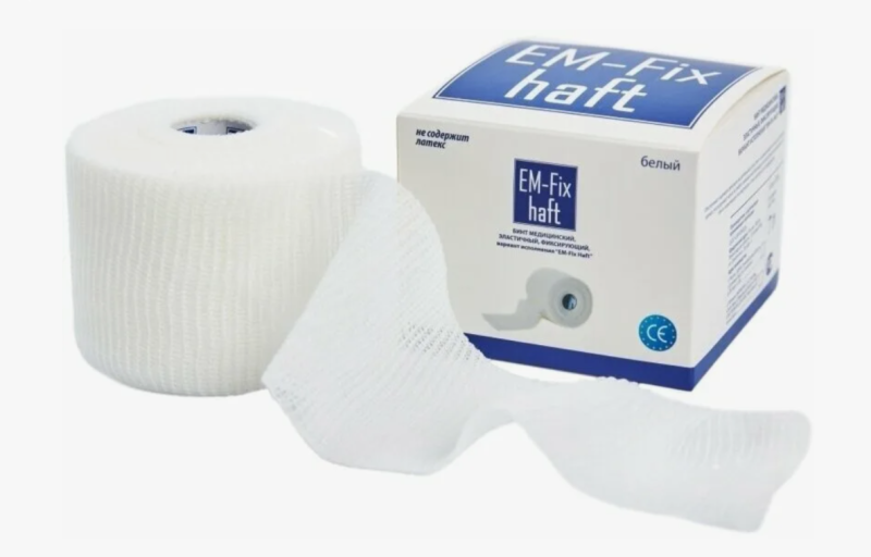 Бинт EM-FIX haft самофиксирующийся – полотняного полиэфирного переплетения из мягкого нетканого материала (хлопчатобумажная пряжа) без швов, подходит для любого типа кожи и не вызывает раздражения. Не липнет к одежде и волосам, поэтому безболезненно снимается даже с чувствительной кожи.