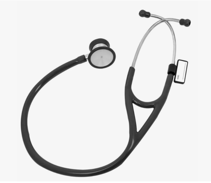 Стетоскоп медицинский терапевтический с особо чувствительной мембранной 04-AM420 BK Deluxe, диаметром 47 мм., с воронкой диаметром 35 мм, имеет головку из нержавеющей анодированной стали и простой поворотный механизм переключения между рабочими поверхностями воронки и мембраны. Утолщенные звукопроводящие трубки обеспечивают наилучшую изоляцию от посторонних шумов. Внутренняя пружина улучшает акустические свойства стетоскопа. Не вызывающее озноба кольцо расположено с обеих сторон головки. В комплекте две пары сменных ушных олив и сменная мембрана, а также именная пластина.