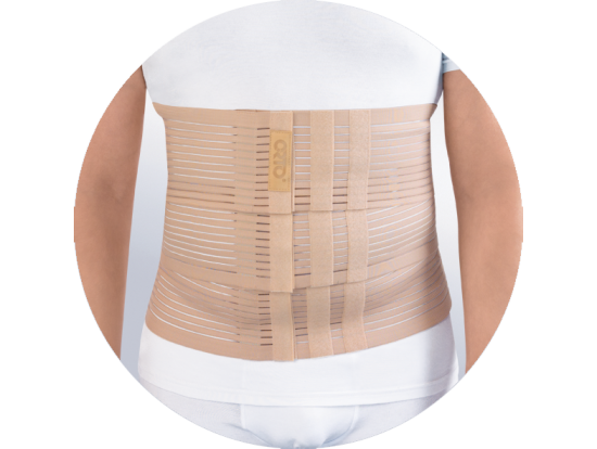 - конструкция изделия дублирует мышцы живота, укрепляет переднюю брюшную стенку над местами ослаблений и послеоперационных повреждений, при этом, не затрудняет дыхание