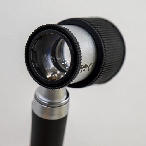 Дерматоскоп KaWe Piccolight D – клинический инструмент в компактном легком корпусе, предназначенный для визуального исследования кожного покрова. Обеспечивает 10-ти кратное увеличение структуры кожи и освещение обследуемого участка, сравнимое с микроскопией падающего света. Незаменим в ежедневной практике для максимально точного исследования пигментных изменений кожи и в особенности ранней диагностики злокачественных меланом. Модель дерматоскопа KaWe «Piccolight D» работает от батарейки.