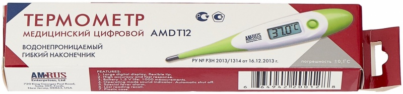 - Электронный градусник Amrus enterprise AMDT-12 отключается после 9 минут бездействия;