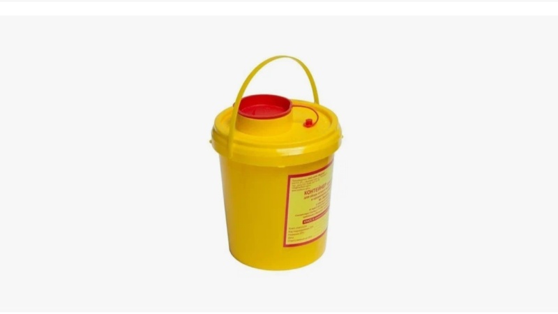 Резервуар для безопасного сбора использованных игл в медицинских учреждениях. Предназначен для однократного применения.