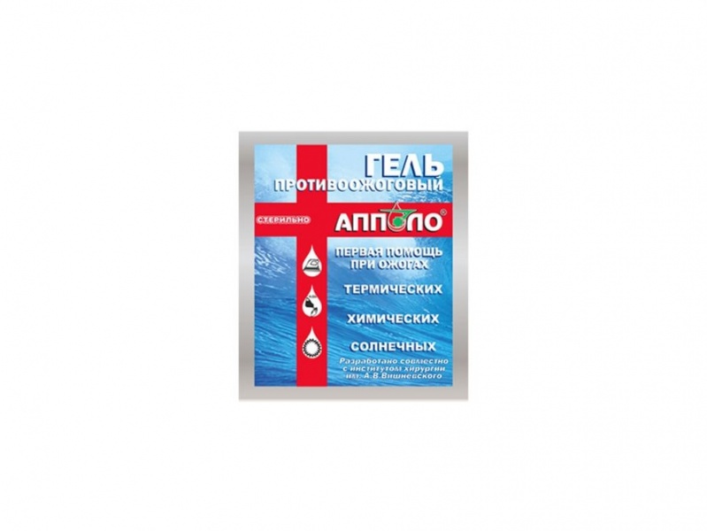 Гель противоожоговый "АППОЛО" предназначен для оказания первой помощи при ожогах и лечения ожоговых ран. Лечение ожогов с применением противоожогового геля предотвращает развитие такого заболевания, как Ожоговая болезнь. Гидрогель "АППОЛО" - оптимальное и максимально эффективное средство от ожогов. Средство от ожогов обязано обладать специфическими свойствами, чему соответствует гидрогель.