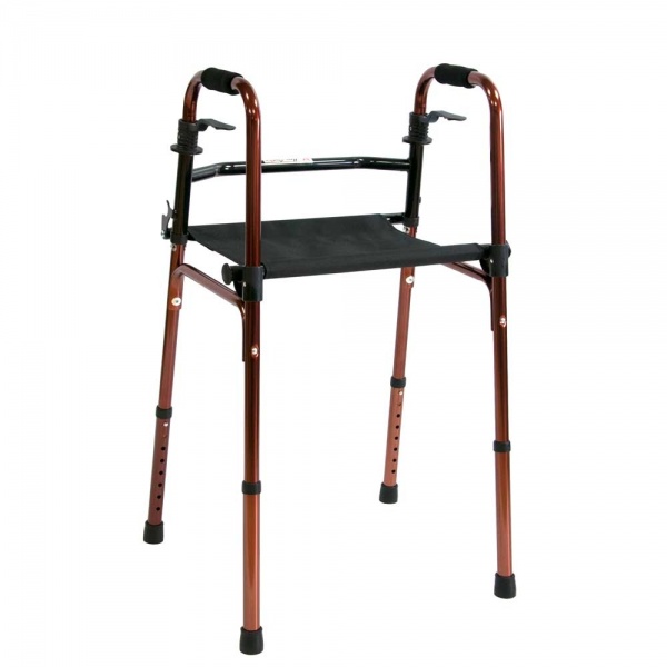 Опорные поручни ходунков выполнены из анодированного алюминия и не подвергается коррозии, скрепляющая рама – из стали с полимерным покрытием. Встроенное в конструкцию сиденье позволяет использовать ходунки как стул. Ходунки легко складываются и не занимают много места, имеют 8 положений регулировки высоты с шагом в 2,5 см. Мягкие накладки на поручнях ходунков не дают рукам скользить; резиновые наконечники, расположенные на опорах, предохраняют от скольжения по твердым поверхностям.