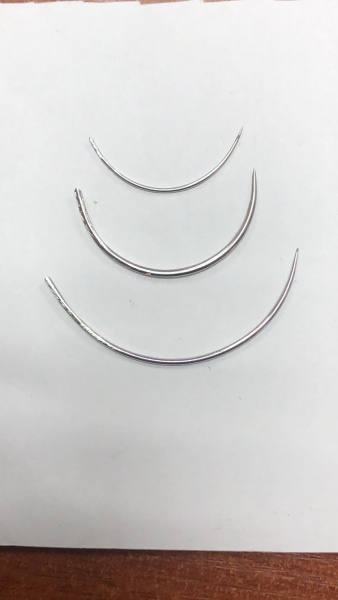 Применяются для сшивания плотных тканей кожи. Имеют трехгранную форму в поперечном сечении.