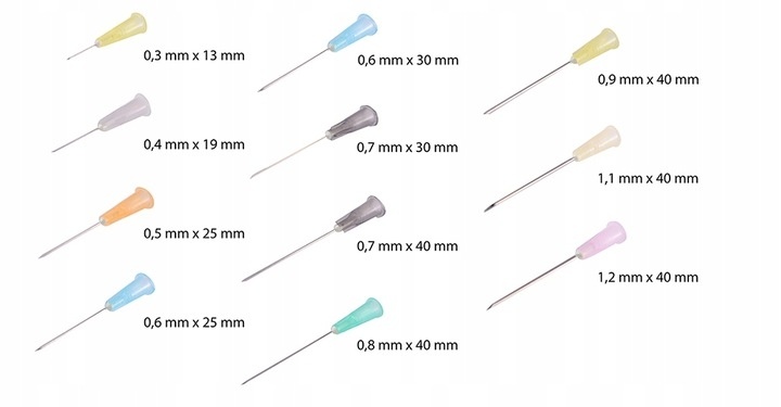 -цветовая кодировка канюли иглы