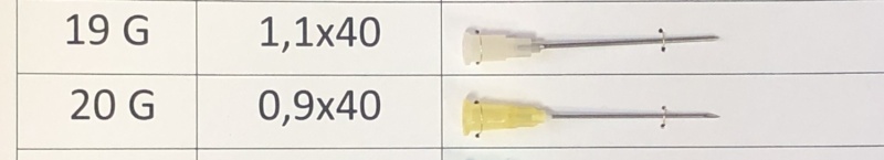 -цветовая кодировка канюли иглы