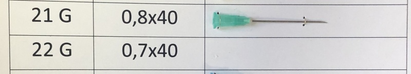 | Размер иглы (G), длина (дюйм) | Наружный диаметр иглы х длина, мм | Цветовой код |