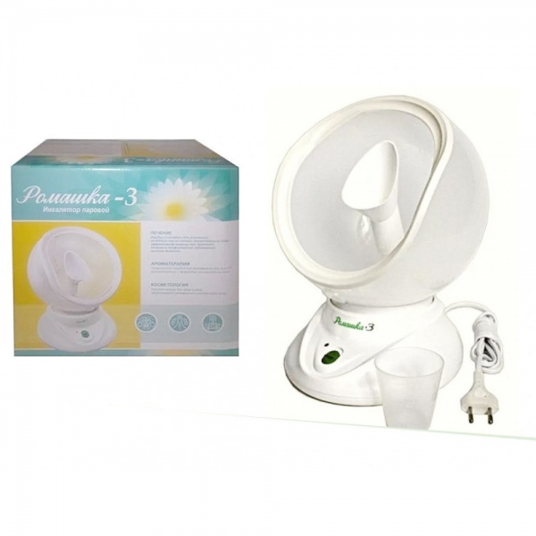 - Ингалятор паровой Ромашка-3 совмещает три функции в одном устройстве: ингалятор, паровая сауна для лица и аромалампа – помощь в лечении болезней, распаривание кожи, её увлажнение и ароматерапевтические сеансы;