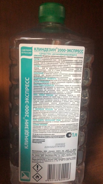 Содержит в своем составе в качестве действующих веществ: н-пропиловый спирт - 40%, изопропиловый спирт - 35%, алкилдиметилбензиламмоний хлорид - 0,09%, дидецилдиметиламмоний хлорид - 0,09%, 2-феноксиэтанол - 0,05%, а также вспомогательные компоненты.