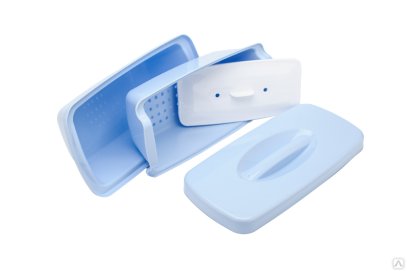 Форма и размер крышки разработаны с учетом эргономических требований. Конструкция контейнера позволяет легко закрывать крышку и обеспечивает ее плотное прилегание, что дает возможность сохранять необходимую концентрацию рабочего раствора. Контейнер изготавливается из нетоксичных, химически стойких полимерных материалов, разрешенных к применению в изделиях медицинского назначения и устойчивых к длительному воздействия температур, используемых при разных режимах стерилизации паровым способом (автоклавирование) в соответствии с МУ-287-113, выдерживает санитарную обработку любыми средствами, исключает окрашивание любыми растворами.