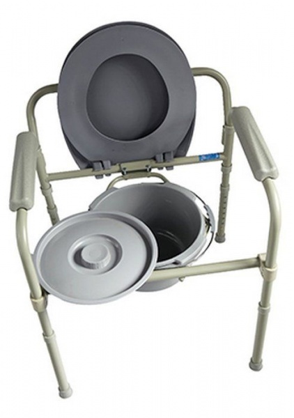 Данная модель кресла-туалета очень мобильна – легко складывается и не занимает много места. Может использоваться также как насадка на унитаз или поручень.