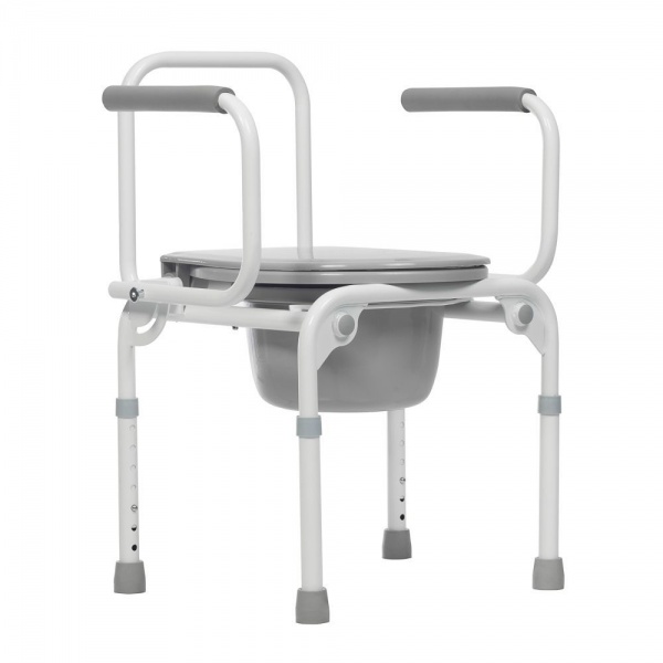 Конструкция кресла для инвалидов позволяет использовать его со стандартным унитазом. Стул оснащен откидной крышкой, которую можно снять. Сиденье и ведро с крышкой изготовлены из прочного пластика. Ножки регулируются по высоте, чтобы каждому пользователю было удобно. Прочная стальная рама с антикоррозионным покрытием выдерживает нагрузку до 130 кг.