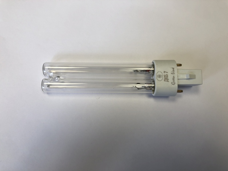 Лампа ДКБ-7 – ультрафиолетовая бактерицидная лампа низкого давления. Применяется в ультрафиолетовых облучателях старого типа ОУФК-01 для дезинфекции воды и воздуха.
