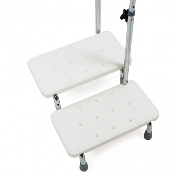 Ступень предназначена для установки в ванные комнаты или душевые. Используется для безопасного принятия водных процедур: позволяет с комфортом погружаться в ванну и выходить из нее. Поручень закрепляется на ступени с правой или левой стороны.