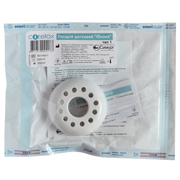Предназначен для консервативного лечения опущения матки и выпадения стенок влагалища за счет их удержания в правильном положении. Представляет собой блюдцеобразное кольцо, оснащенное отверстиями: большое по центру, маленькие – вдоль края. Отличается хорошей гибкостью, приобретая оптимальную степень мягкости при нагревании от температуры тела.