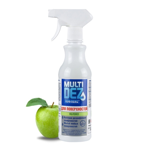 "Мультидез-Тефлекс" - для мытья и дезинфекции поверхности обладает антимикробной активностью в отношении бактерий (включая туберкулез), вирусов (гриппа, в т.ч. птичьего, свиного и т.д. полиомиелита, энтеровирусы, гепатиты, ВИЧ-инфекция, атипичная пневмония), грибов (рода Кандида, Трихофитон, плесневые грибы).