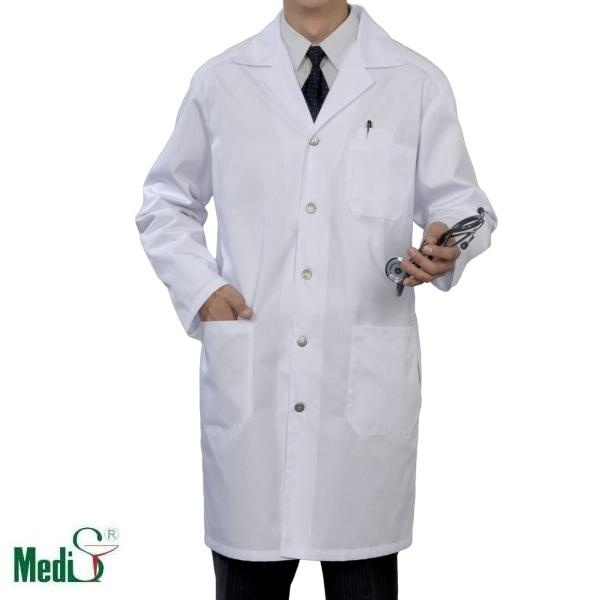 Мужской медицинский халат белого цвета Медис Х-207 - модель в классическом стиле с отложным английским воротником, имеются два глубоких нижних кармана и один нагрудный. Застежка на пуговицах.