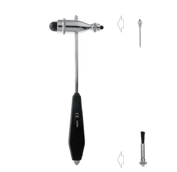 Описание: неврологический молоточек с черной рукояткой из пластика тяжёлый с кисточкой с иглой прибл. 23 см прибл. 200 г