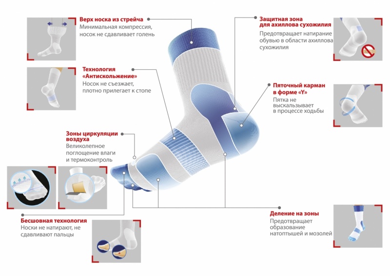 - имеют гладкую бесшовную текстуру на внутренней поверхности носка