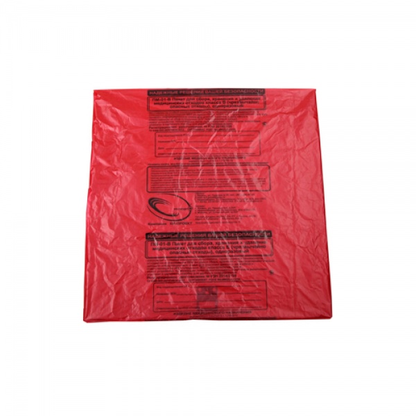 Пакет для медицинских отходов Класс В - Красный (чрезвычайно опасные) - материалы, контактирующие с больными особо опасными инфекциями. Отходы из лабораторий, работающих с микроорганизмами 1-4 групп патогенности. Отходы фтизиатрических, микологических больниц. Отходы от пациентов с анаэробной инфекцией.