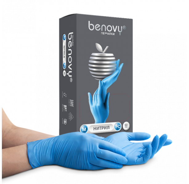 Одноразовые перчатки Benovy размера M выполнены из нитрила, благодаря чему обеспечивают полное облегание рук с сохранением тактильных ощущений. Гипоалергенны. Рабочая поверхность перчаток имеет выраженную текстуру, которая обеспечивает надежный захват и удержание инструментов в условиях повышенной влажности. Перчатки можно использовать при бытовых работах, обработке продуктов питания, также при косметологических процедурах. Перчатки поставляются в картонной упаковке. Количество в упаковке: 50 пар. Имеется регистрационное удостоверение на медицинское изделие.