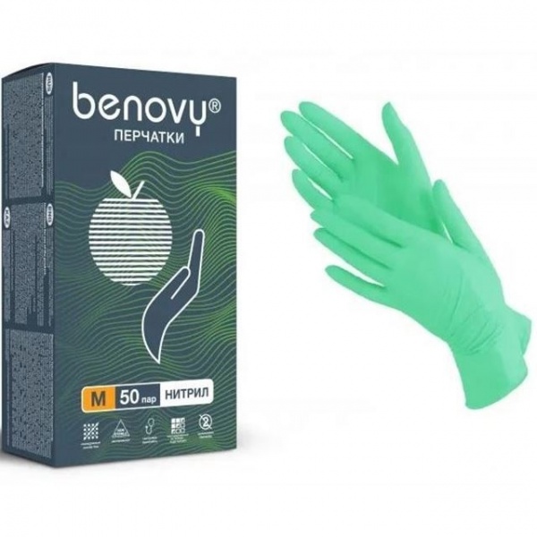 Одноразовые перчатки Benovy размера M выполнены из нитрила, благодаря чему обеспечивают полное облегание рук с сохранением тактильных ощущений. Гипоалергенны. Рабочая поверхность перчаток имеет выраженную текстуру, которая обеспечивает надежный захват и удержание инструментов в условиях повышенной влажности. Перчатки можно использовать при бытовых работах, обработке продуктов питания, также при косметологических процедурах. Перчатки поставляются в картонной упаковке. Количество в упаковке: 50 пар. Имеется регистрационное удостоверение на медицинское изделие.