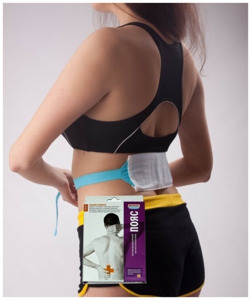 Магнитная сторона эластомагнитов обращена к телу человека. Пояс укомп-лектован гигиеническим чехлом.