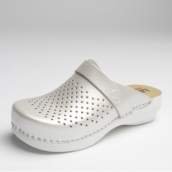 3. Кончик мыска закрытый и жёсткий, чтобы защитить пальцы ног. Перфорация в сочетании с открытой пяткой позволяют ступне оставаться в сухости и комфорте даже во время напряжённой работы.