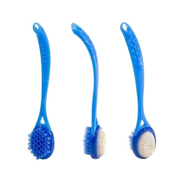 — На одной стороне щетки расположена пемза для удаления ороговевшего слоя кожи. С другой стороны расположена массажная щетка с мягкой щетиной.