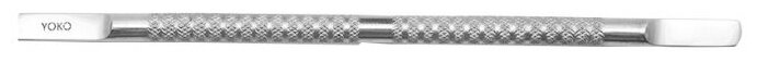 Профессиональный двусторонний шабер Yoko 024 изготовлен из высокопрочной нержавеющей стали с глянцевым покрытием, устойчив к износу и всем видам стерилизации. Используйте закругленную лопатку для сдвигания кутикулы, а плоскую лопатку в прямоугольным краем - для очистки ногтевого плато от птеригия и удаления загрязнений. Рифленая поверхность шабера препятствует скольжению инструмента в руках.