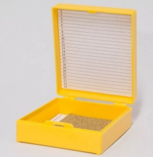 Штатив-бокс предназначен для хранения микропрепаратов на предметных стеклах размером 76 х 26 мм, толщиной 1 мм. Имеет подложку из прессованной пробки, нумерованные ячейки и поля для записи. Изготовлен бокс-штатив из полистирола. Индивидуальная упаковка. Рабочий диапазон температур - от -30 до +60°С.