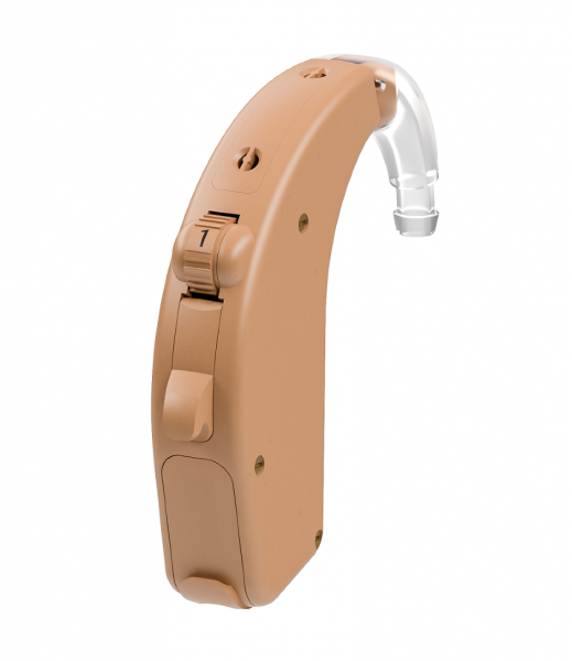 На внешней панеле слухового аппарата также находятся регулятор громкости и кнопка переключения программ М-Т, позволяющая переходить из режима прослушивания через микрофон в режим телефонной катушки. Выключение возможно путем открытия батареечного отсека или долгим нажатием кнопки переключения программ. Слуховой аппарат комплектуется звукопроводящим рожком, который защищает микрофонный вход от ветра.