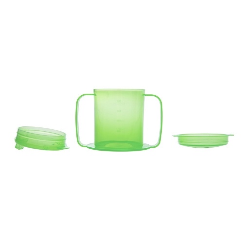 Боковые ручки подходят к размеру руки взрослого человека. Крышка 360° помогает избежать проливание и равномерно распределяет жидкость. Удобно использовать вместе с одноразовой трубочкой (трубочку рекомендовано менять перед каждым применением, она не идет в комплекте).