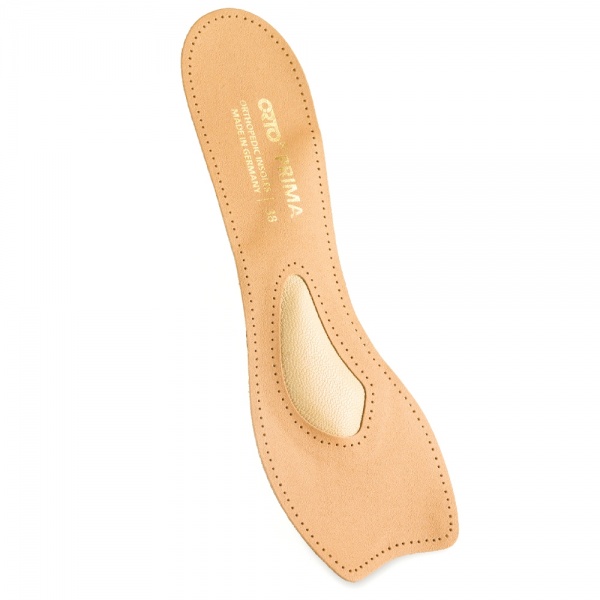 Бескаркасные ортопедические стельки для модельной обуви на высоком каблуке. Имеют укороченную носочную часть, мягкий пелот в области поперечного свода и тонкий смягчающий слой в передней и центральной части стельки. Покрытие изготовлено из натуральной кожи.
