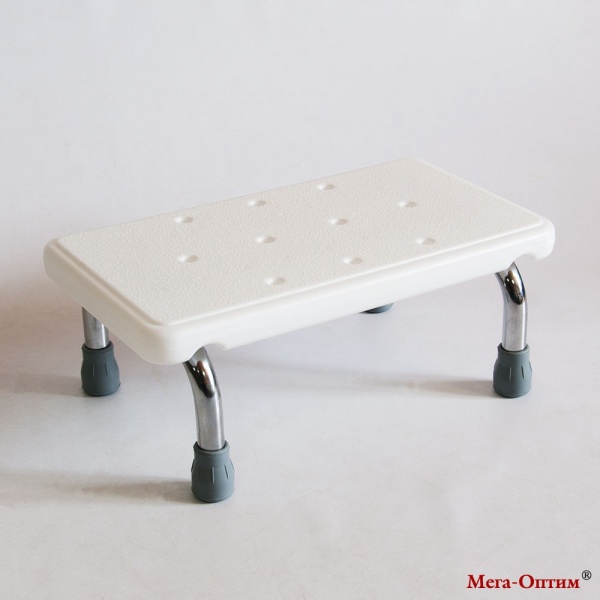 Ступень предназначена для ухода за больными в лечебном стационаре или домашних условиях. Ступень используется как вспомогательное средство при погружении в ванну и выходу из нее. Устанавливается непосредственно перед ванной. Ступень выполнена из высокопрочного пластика. Ножки конструкции из хромированной стали, защищены от коррозии. Ступень устойчива и не скользит по полу благодаря резиновым наконечникам.