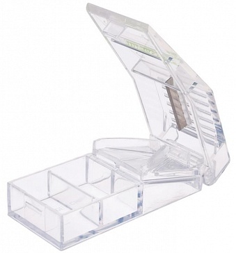 Содержит нож-делитель для лекарств и 2 отделения для хранения.
