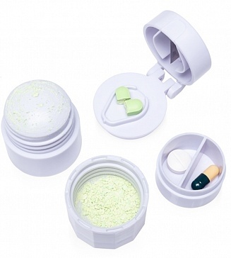 Способ применения: Отделение деления: откройте крышку отделения и положите лекарство в углубленную часть для деления. Плавно закройте крышку до упора. Отделение хранения: снимите верхнюю часть для деления, разложите лекарства по отделениям, наденьте обратно верхнюю часть таблетницы. Отделение размельчения: открутите нижнюю часть таблетницы, поместите лекарство в углубление, медленно закручивайте нижнюю часть обратно до полного измельчения лекарства. Мензурка: для использования мензурки снимите верхнюю часть для деления и выньте отделение для хранения. Полный объем мензурки составляет 30 мл, объем нижней части мензурки -10 мл.
