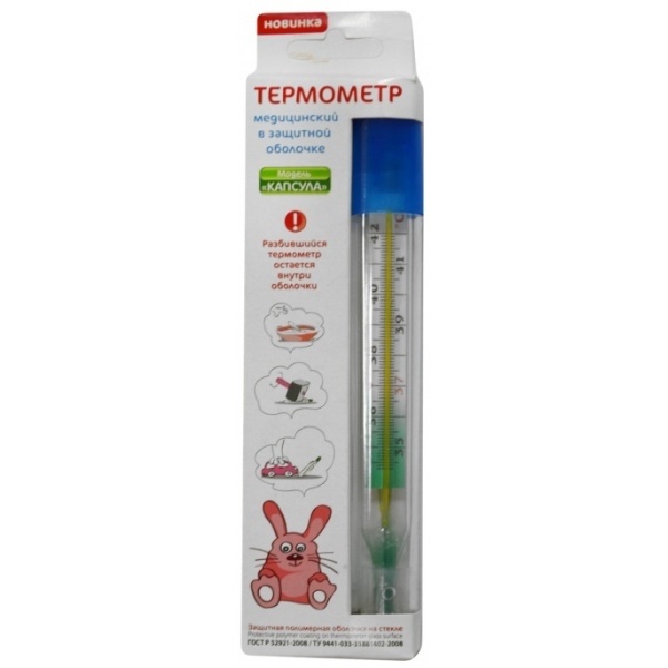 Специальное покрытие всего термометра защитной пленкой обеспечивает надежную защиту от утечки ртути.