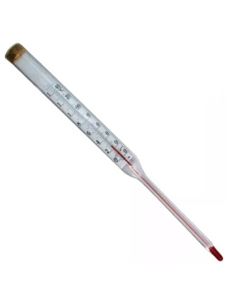 Стеклянный термометр с вложенной шкальной пластиной.