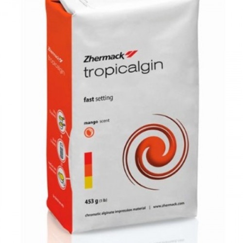 Тропикалгин – это альгинат хроматического типа, обладающий быстрым периодом схватывания и не имеющий пыли. Средство подходит для работы с протезами и антагонистами для них, а также с моделями для исследования. Отличительными особенностями считаются минимальную длительность обработки и стремительное схватывание.