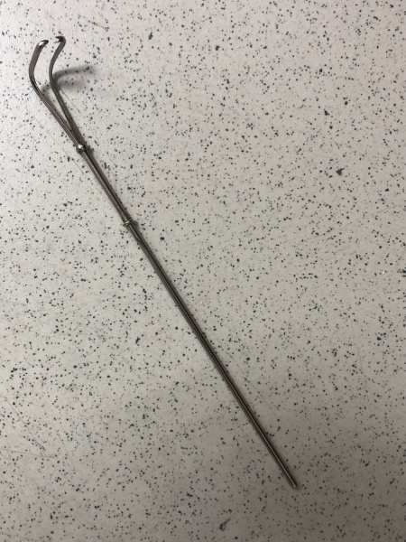 Ватодержатель для носоглотки – хирургический инструмент, предназначенный для удержания ваты при тампонировании носоглотки. Представляет собой стержень оканчивающийся зубчатой рогаткой, которая затягивается с перемещением фиксирующего кольца.