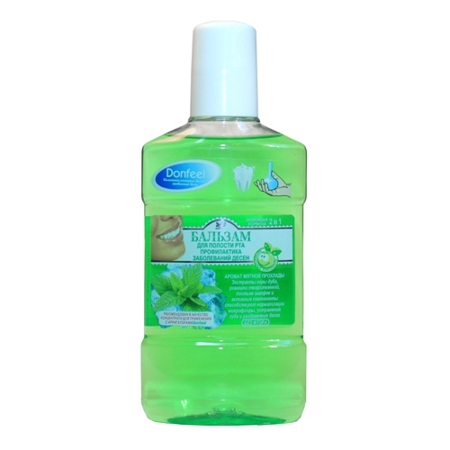 Бальзам для полости рта (концентрат для ирригатора) "Эффективная профилактика пародонтоза и гингивита" производства Donfeel, Россия. Помимо активных ионов кальция и фтора содержит антибактериальные добавки. Устраняет раздражение и снижает кровоточивость десен при пародонтозе, применяется при лечении и профилактике пародонтоза и гингивита. Предназначен для ежедневной гигиены полости рта.